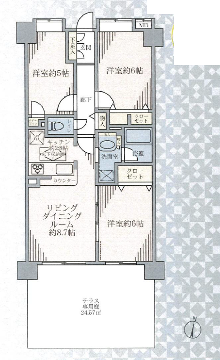 設備 | 陽当り良好/管理人日勤/複数路線利用可/リフォーム済み/浴室乾燥機/収納/床下収納/各室収納スペース/洗面室収納/システムキッチン/シャワー/バストイレ別/洗濯機置場/専用庭/全室フローリング/パウダールーム/出窓 | ||
