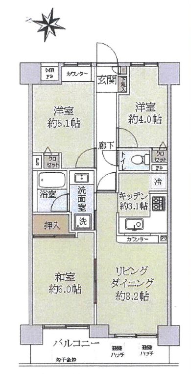 面積(平米) | 専有:59.68 バルコニー:7.51 | ![]() | 媒介 |