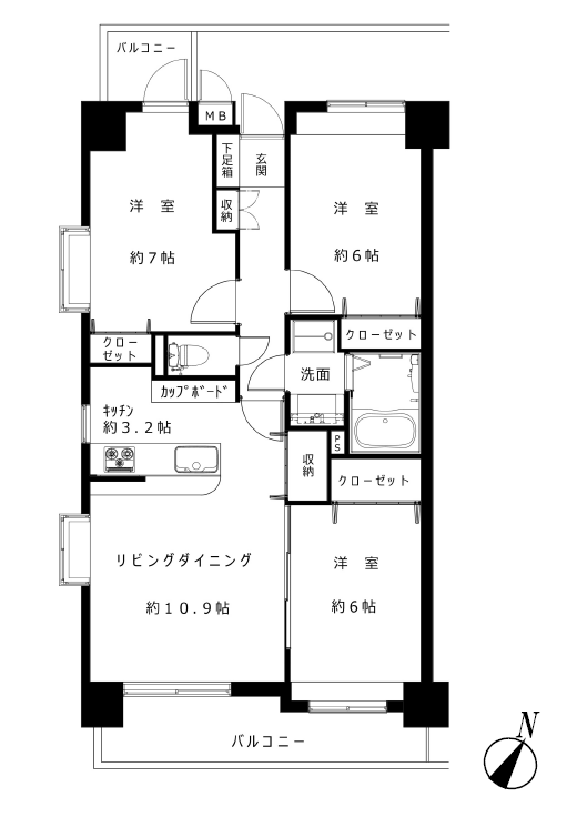 所在階 | 4階/全7階 | 総戸数 | 69 |