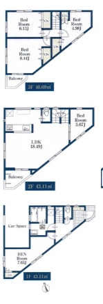 面積(平米) | 土地:65 建物:126.91 | ![]() | |