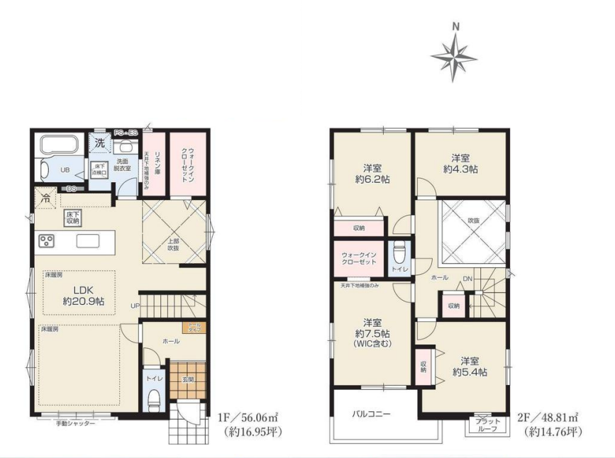 ◆車庫スペースが2台分♪ ◆吹き抜けがあり開放感のある21帖超のLDKスペース♪ ◆WICやリビング収納など収納... | ||||||||||||||||||||||